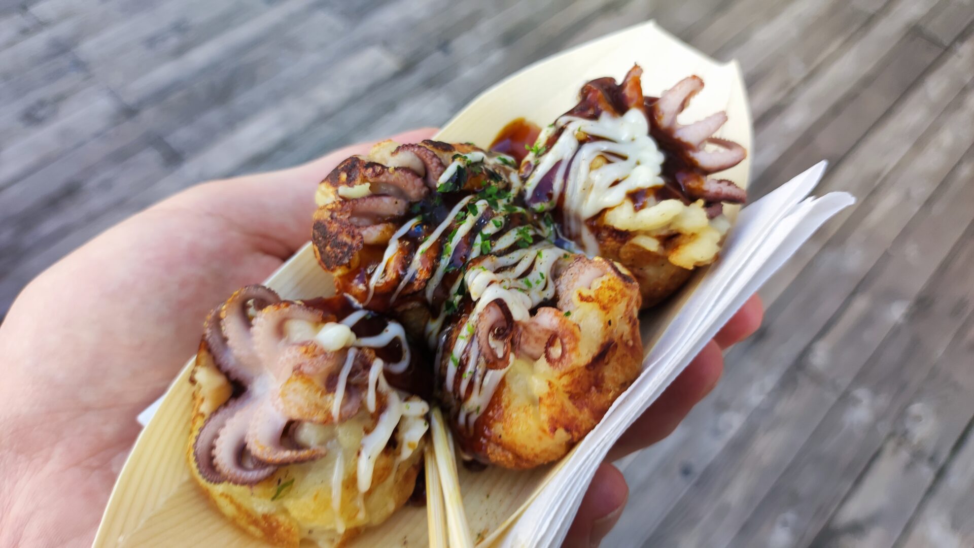 くいだおれ太郎がいたので、踊りだこ焼きを買って食べた。