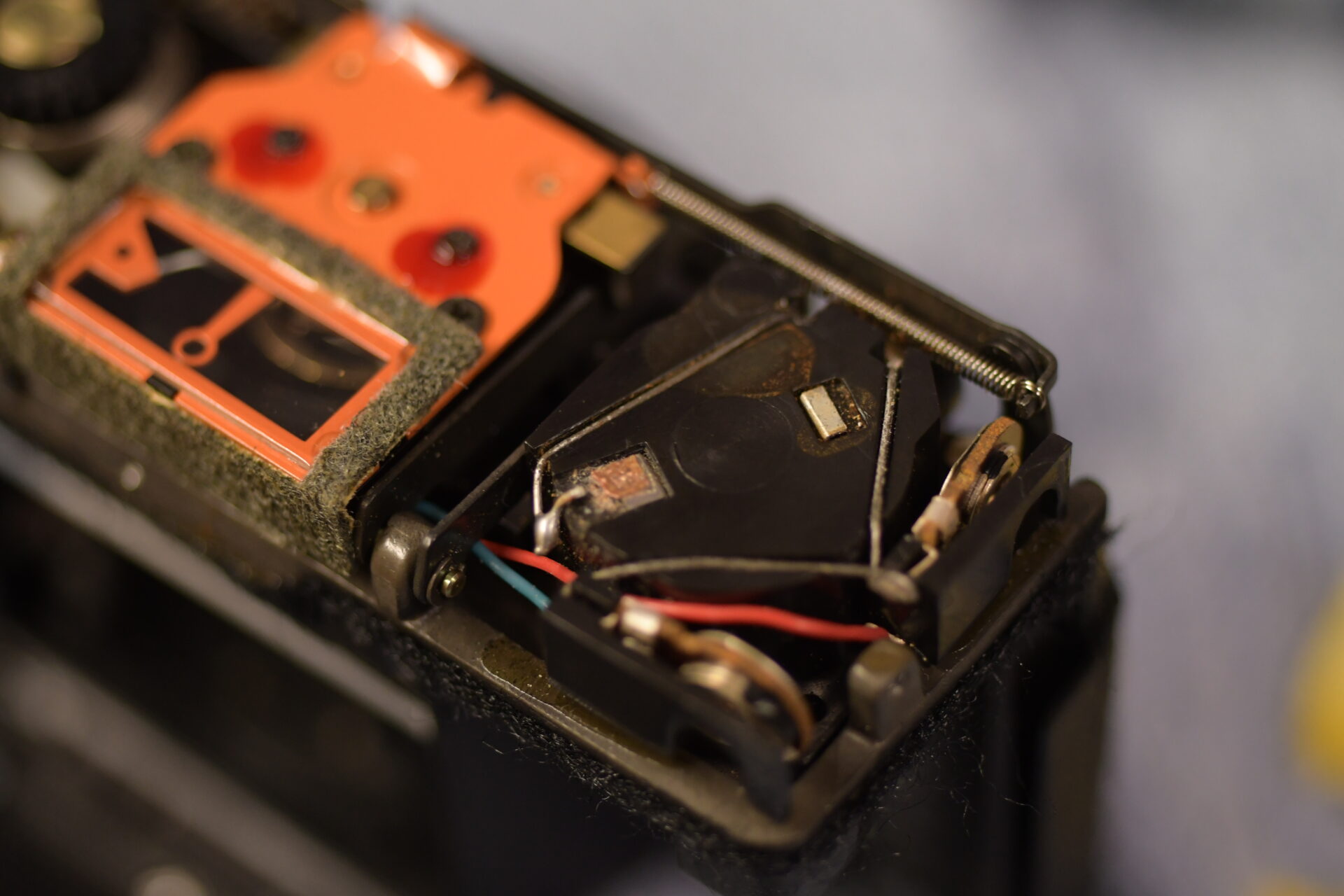 届いたRollei 35の露出計は運悪く故障していた。元々露出計が故障しやすい機種であること、大抵の原因は断線であることは調べていたので、分解ついでにはんだ付けして修理した。電池はMR-9互換の1.5Vアルカリボタン電池で代用することもあり、センサー精度は端から当てにしていないので針の振れは参考程度で問題ない。