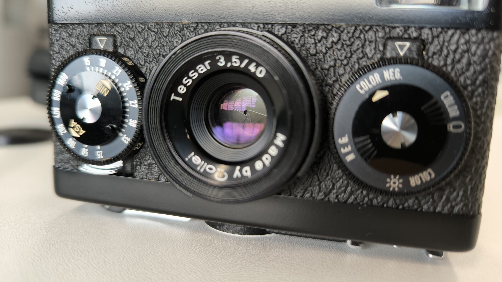 そこで眼を惹いたのがRollei 35だった。友人の積雲が所有しているLeica M3の沈胴式レンズが記憶に新しい。無印/Tとゾナーの35S、ガラスファインダーのドイツ製無印で迷ったが、オークションで4万円弱のシンガポール製Rollei 35が目についた。塗装浮きは見られたものの本体の埃・汚れは見られず、純正ポーチが綺麗だったため、現状品とはいえ保管状態は悪くないと推察した。結局、時期を待つより物欲が勝って購入してしまった。
