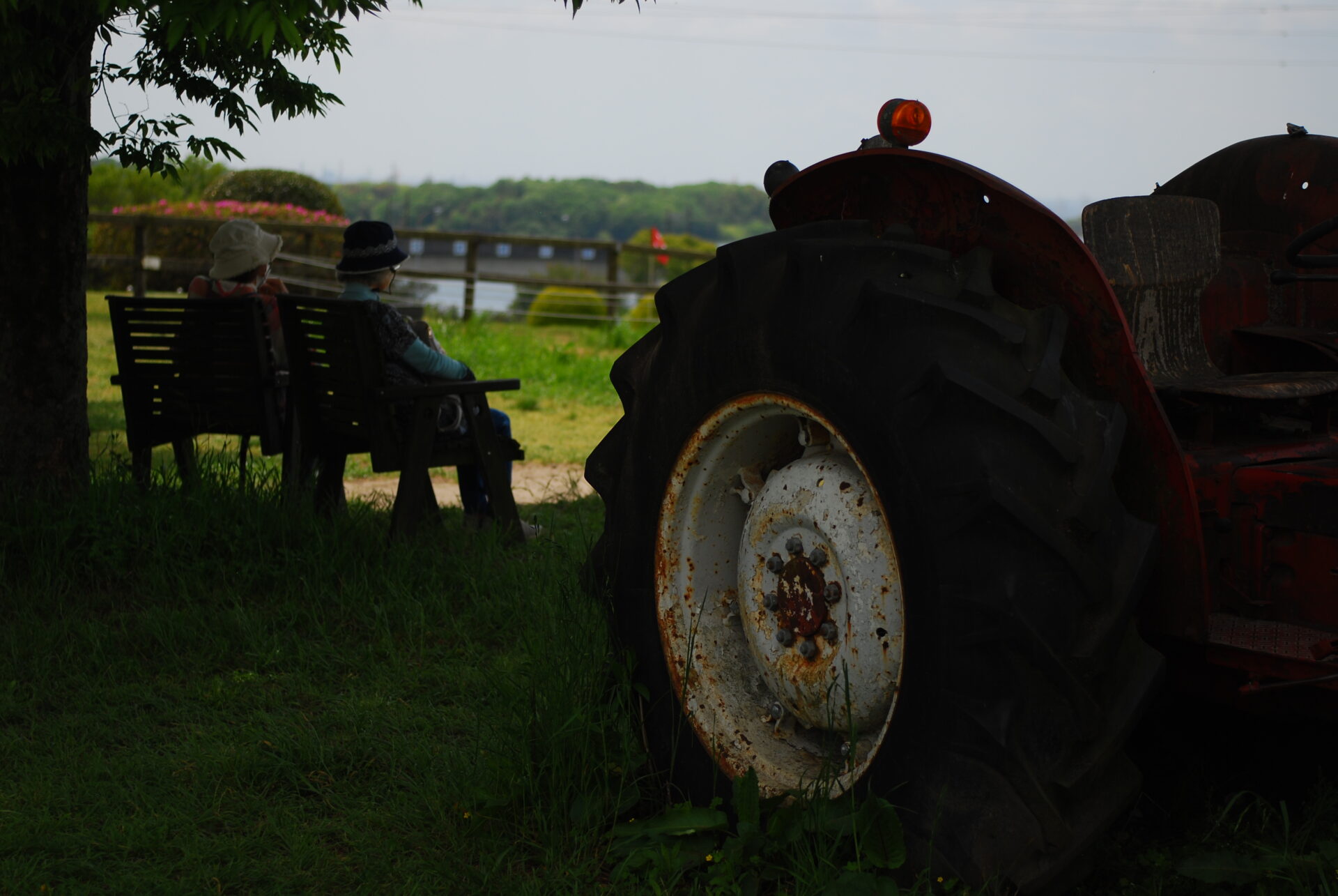 ベストショットはアイキャッチ画像にした。なだらかな丘に花畑があったため煽りにくく、ファインダーを見ず腰に構えて撮影した。ボケが多くてピント位置も中途半端だが、その視線上に青色の蝶々が羽ばたいている。